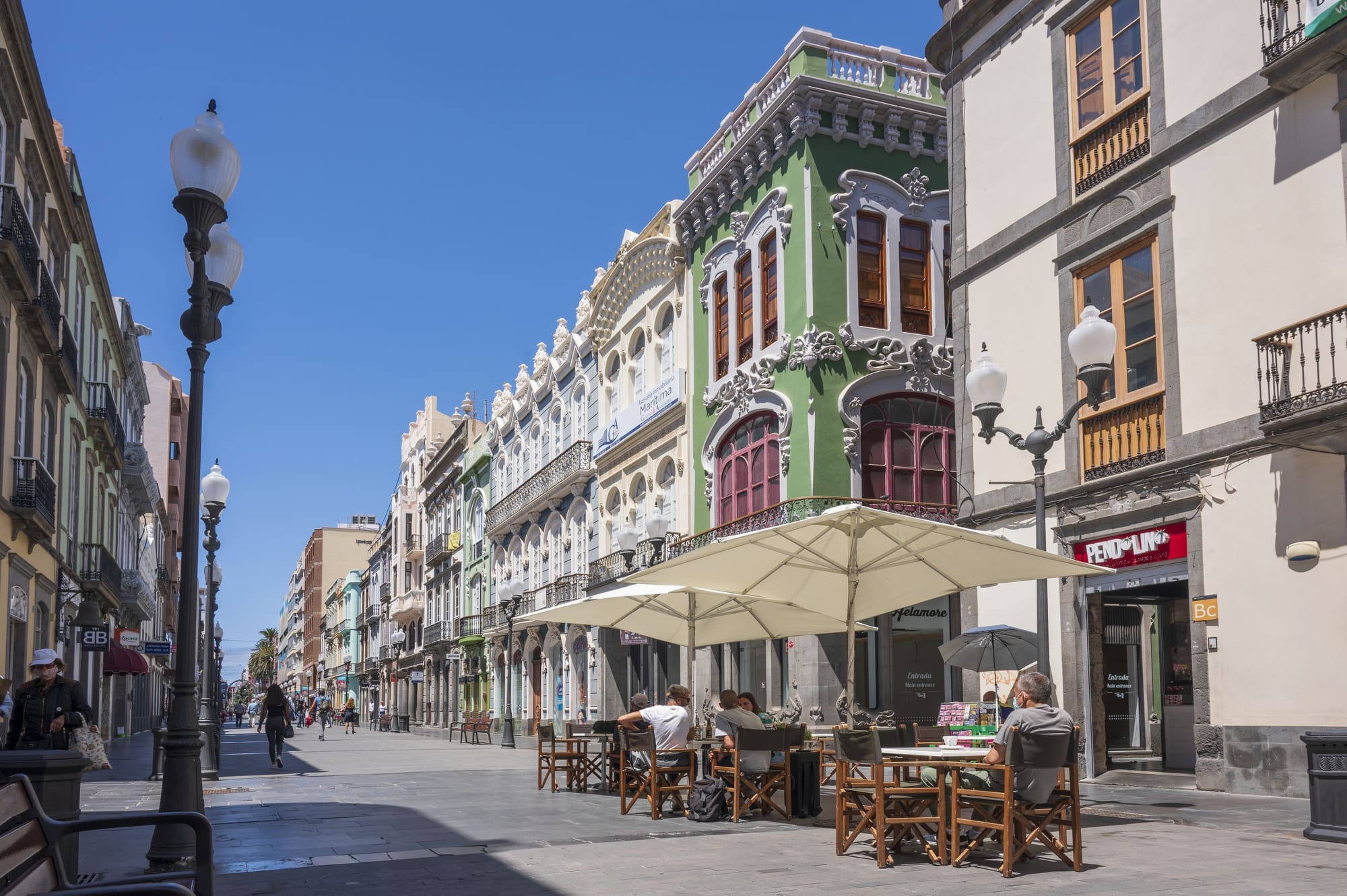 Bulliciosa, llena de comercios y de vida. Y con una interesante muestra de edificios modernistas. Así es la calle mayor de Triana, una vía peatonal que, junto con sus calles aledañas, es uno de los corazones de la ciudad. A Triana se va a comprar, a pasear, a tomarse un helado, a comer, a disfrutar de una buena sobremesa en sus terrazas… Y también al Teatro Pérez Galdós, ubicado en uno de sus extremos, o al Teatro Cuyás, a solo dos pasos.