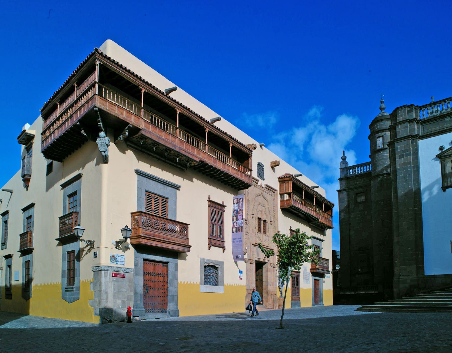 Los perros de Santa Ana, el conjunto escultórico ubicado a los pies de la escalinata que da acceso a esta plaza, nos dan la bienvenida al barrio fundacional de la ciudad. Perderse por sus calles empedradas, detenerse en sus plazas y rincones, visitar sus ermitas e iglesias —empezando por la Catedral de Santa Ana—, contemplar las casas señoriales con sus tradicionales balcones canarios, es hacer un viaje en el tiempo que nos lleva a los orígenes de la ciudad. Vegueta, llena de referencias históricas, también es sinónimo de ocio y cultura.