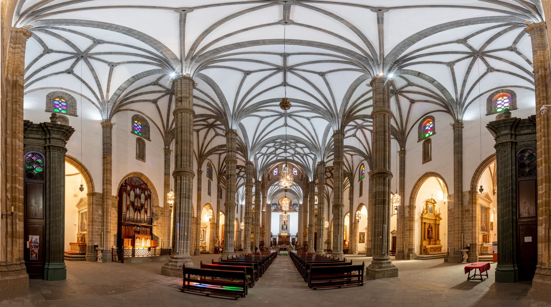 La Catedral preside desde hace cinco siglos la plaza de Santa Ana. Construida por mandato de los Reyes Católicos, la obra —aún inconclusa— se desarrolló en varias etapas, por lo que en ella conviven diferentes estilos arquitectónicos. Alberga importantes obras de arte, algunas de ellas en el Museo Diocesano de Arte Sacro, ubicado en uno de sus laterales, en torno al Patio de los Naranjos. Desde lo alto de la Catedral podemos contemplar la ciudad y la bahía de Las Palmas.