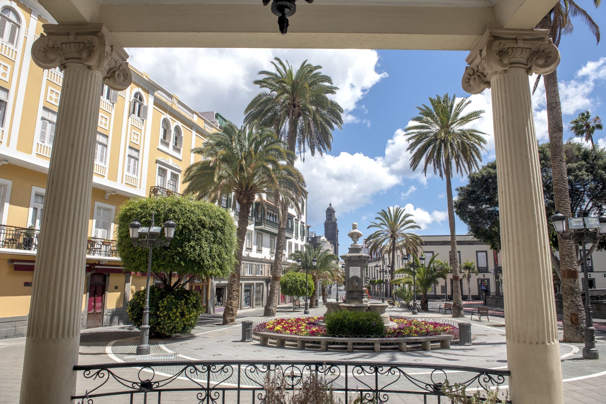 La plaza de Cairasco, al inicio del barrio de Triana, es uno de los rincones más hermosos de Las Palmas de Gran Canaria. A su alrededor se alza el Gabinete Literario, un edificio histórico de estilo modernista de gran belleza, y el Hotel Madrid, establecimiento emblemático que lleva más de cien años alojando a visitantes de todo el mundo y siendo punto de encuentro de tertulias en su terraza. Este espacio único se ha convertido en muchas ocasiones en plató de cine para producciones nacionales e internacionales.