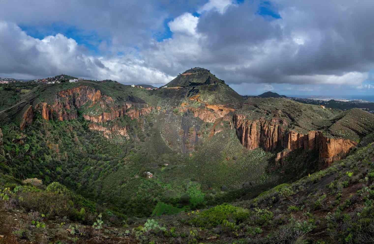 La caldera de Bandama, a caballo entre los municipios de Las Palmas de Gran Canaria, Santa Brígida y Telde, tiene su origen en un proceso eruptivo que comenzó hace 5.000 años. Existen dos senderos para recorrerla a pie. Y para completar la excursión a este paraje, el mirador del pico de Bandama, al que se llega por una carretera que serpentea por los viñedos con los que se elabora el vino de Gran Canaria, nos regala una panorámica espectacular de la ciudad, de la caldera y de gran parte de la zona noreste de la isla.